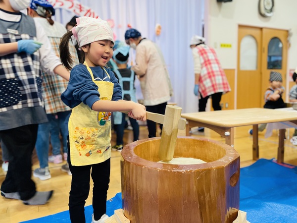 臼と杵でぺったんこ❗️ぺったんこ❗️とかけ声をかけながらつきましたよ♪